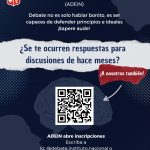 Con mucha alegría, les informamos que el proceso de inscripción para academias, talleres y ramas deportivas del Instituto Nacional, se estará desarrollando durante esta semana y la próxima (del 6 al 17 de abril).