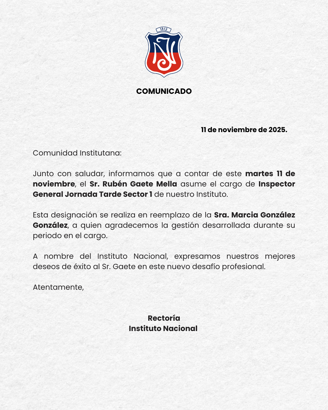 NUEVO SUBDIRECTOR ACADÉMICO DEL INSTITUTO NACIONAL